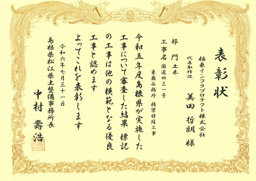 | 令和元年度 | 島根県 | 一般土木工事部門 |