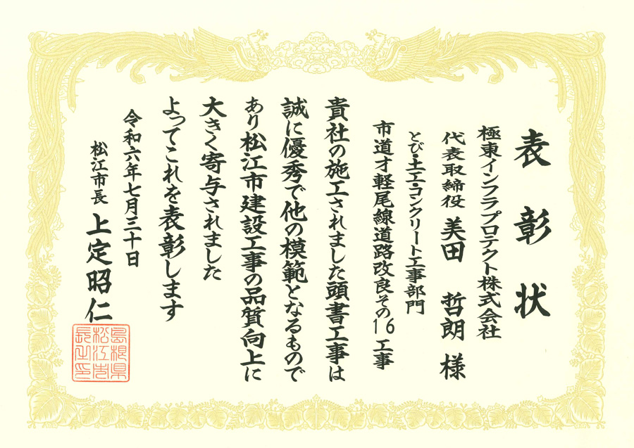 | 平成30年度 | 松江市 | とび・土工・コンクリート部門 |